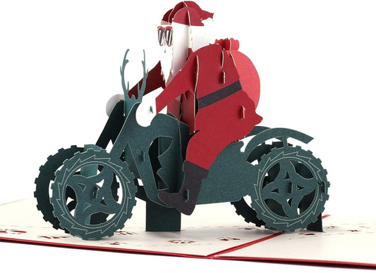 Santa on Motorbike Christmas Card Handmade 3D Pop Up Greeting Card