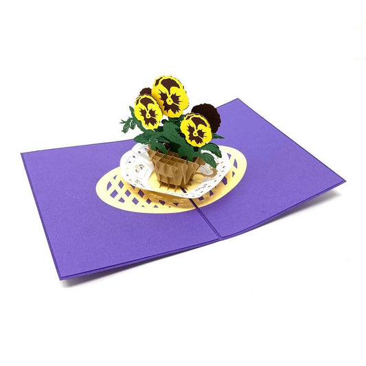 Basket Of Yellow Pansies 3D Pop Up Handmade Greetings Card