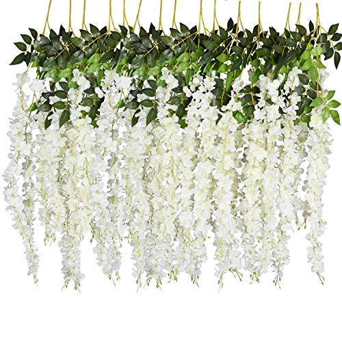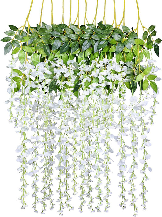 12 Pack 3.75 Feet/Piece Artificial Fake Wisteria Vine Ratta Hanging Garland Silk Flowers String Home Party Wedding Decor