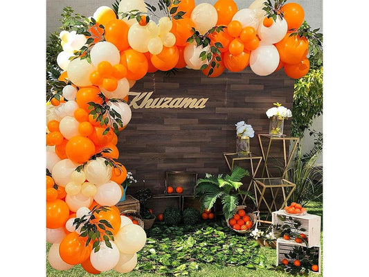 Little Cutie Baby Shower Balloons Decorations Orange Yellow White Balloon Garland Arch kit with Artificial Rose Leaves for Birthday Party