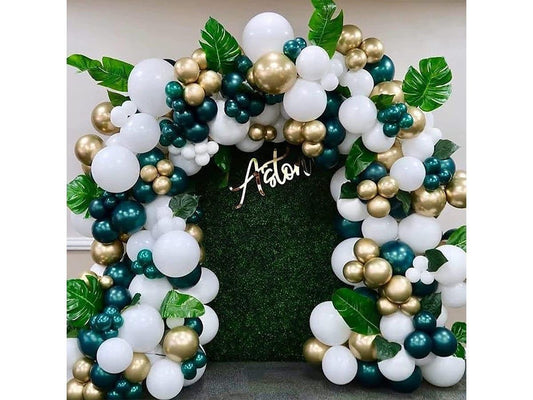 Green White Balloon Garland Arch Kit with Artificial Palm Leaves for Wedding Baby Shower Kids Birthday Tropical Theme Party Decorations