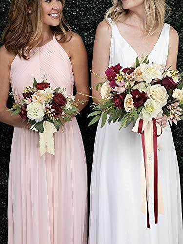 Wedding Bouquets for Bride Marsala Red Bridal Bouquet of Flowers Artificial Flowers