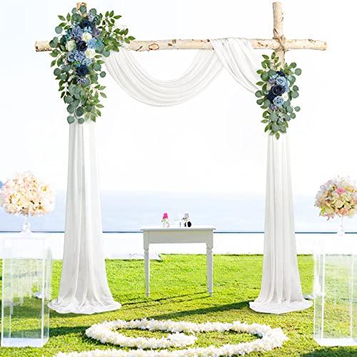 Dusty Blue Artificial Wedding Arch Flowers Kit(Pack of 3), with 26Ft Shiny White Wedding Arch Draping Fabric