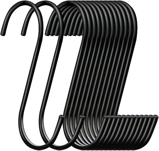 30 Pack S Hooks Black Steel S Shaped Hooks for Hanging Pans Pots Plants Bags Towels Heavy Duty Kitchen Hooks Hanger, Large 3.7 inch