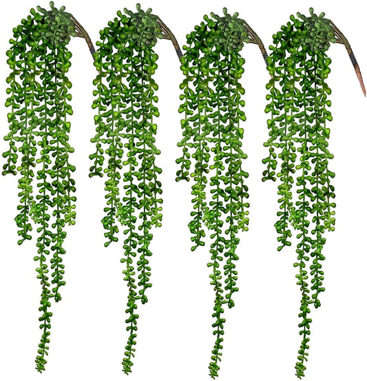 4pcs Artificial Succulents Hanging Plants Fake String of Pearls for Wall Home Garden Decor (24 Inches Each Length)