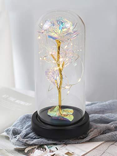 Christmas Rose Gift for her,Women's Gift Birthday Gifts Colorful Artificial Flower Rose Gift Led Light String on Colorful Flower, Last Forever in A Glass Dome, Unique Gift for Her,Thanksgiving Gift