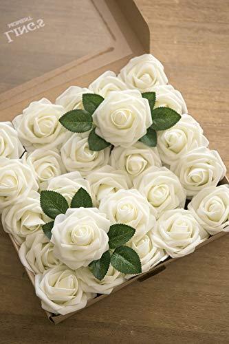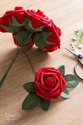 Artificial Flowers 25 Pcs Fake Red Roses Foam Roses with Stems for DIY Wedding Bouquets Party Home Decor Valentines Day