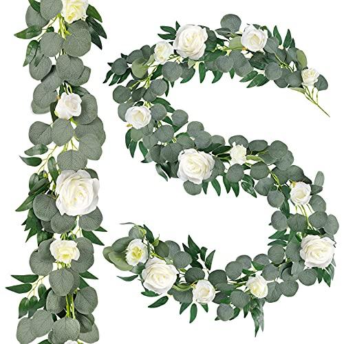 2pcs Artificial Eucalyptus Garland with Flowers Greenery Garland Willow Vines for Wedding Decor