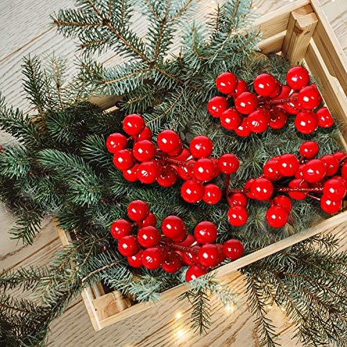 24 Pack Christmas Red Berries Set for Christmas Tree Decoration, Artificial Christmas Red Berry Stems for DIY Crafts