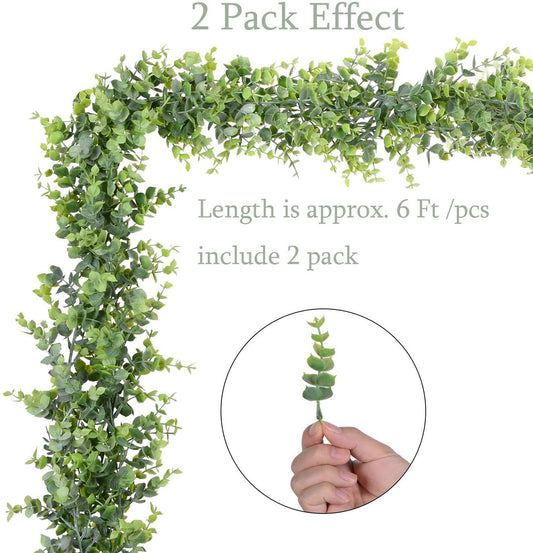 Artificial Vines Faux Eucalyptus Garland, 2 Pack Fake Eucalyptus Greenery Garland Wedding Backdrop Arch Wall Decor
