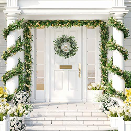 Artificial Eucalyptus Wreath for Front Door 20inch Spring Summer Large Green Leaf Wreath for Festival Celebration Wall Window Faux Eucalyptus Porch Farmhouse Patio Garden Decor