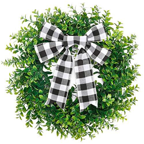 15 Inches Artificial Boxwood Wreath Spring Summer Wreath Faux Green Leaves Greenery Wreath