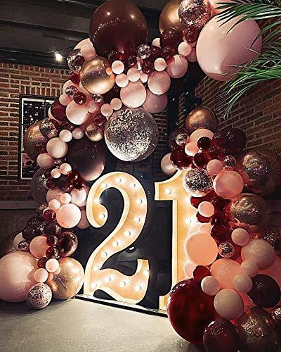 126pcs Burgundy Maroon Pink and Gold Balloons for Baby Shower Decorations