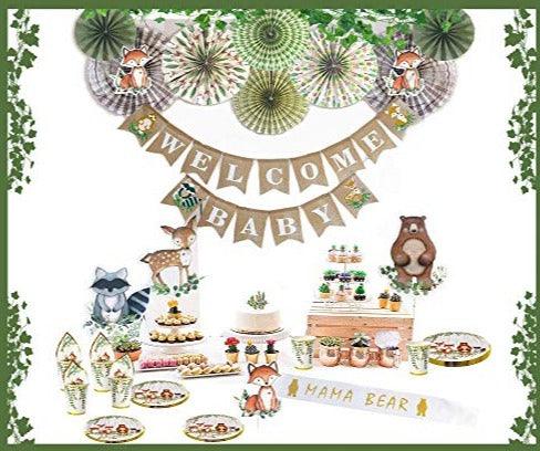 Woodland Theme Baby Shower Birthday Party Tableware Supplies For Boy Girl Decorations