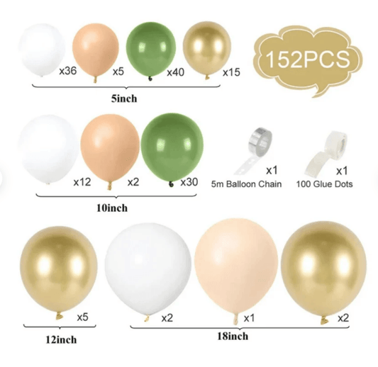 152pcs Olive Green and White Balloon Garland Arch Kit Green White Gold Peach Balloons Retro Green Balloon Set for Wedding Birthday Baby Shower