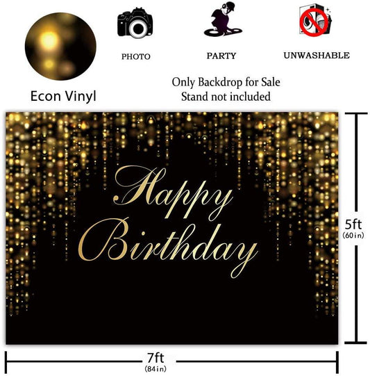 Happy Birthday Party Backdrop Black and Gold Glitter Bokeh Sequin Spots Photography Background