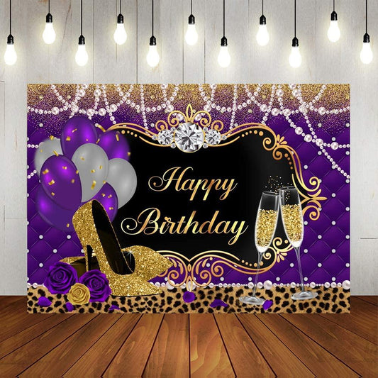 Gold and Royal Blue Birthday Backdrop for Women Happy Birthday Party Background