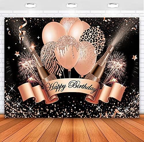 Rose Gold Happy Birthday Backdrop for Women Bday Party Photography Background