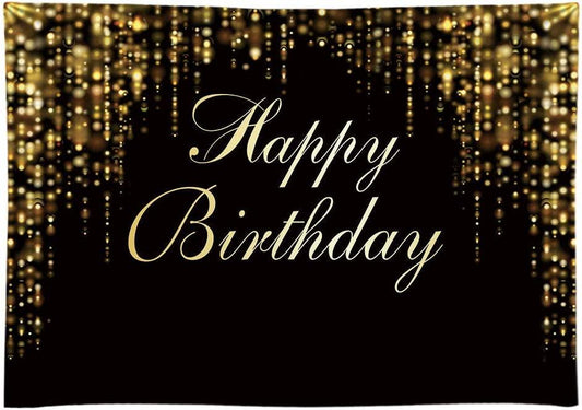 Happy Birthday Party Backdrop Black and Gold Glitter Bokeh Sequin Spots Photography Background