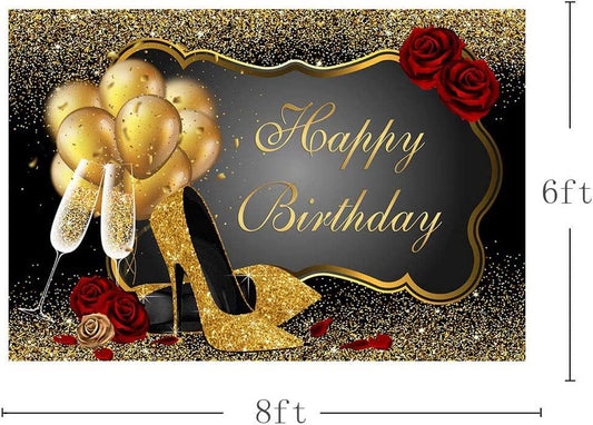 8x6ft Gold and Black Photo Background Props Shiny Sequin Gold High Heels Balloons