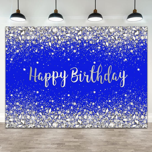 Happy Birthday Backdrop Navy Blue and Silver Happy Birthday Sign Blue Happy Birthday Banner Photo Studio Backdrop