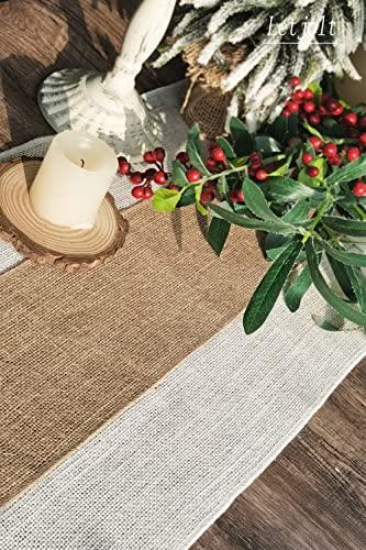 2pcs Burlap Table Runner Burlap Lace Table Runner for Weddings 12X108 Hessian Rustic Jute Country Thanksgiving Christmas Baby Party Decoration Table Decor