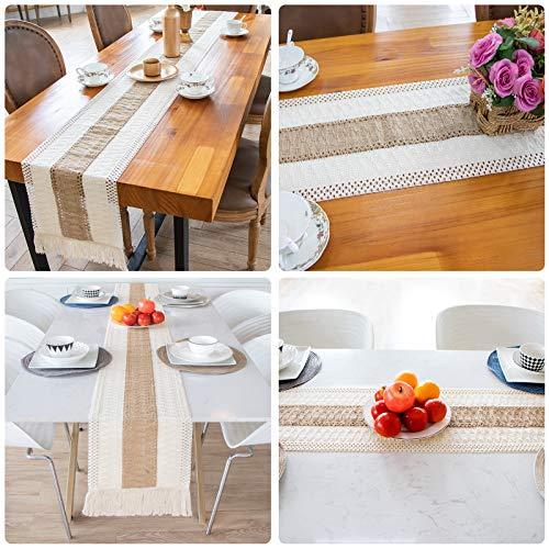 Macrame Table Runner, Natural Burlap Table Runner Cotton Lace Table Runner with Tassels for Bohemian Rustic Wedding Bridal Shower Home Dining Table Decor