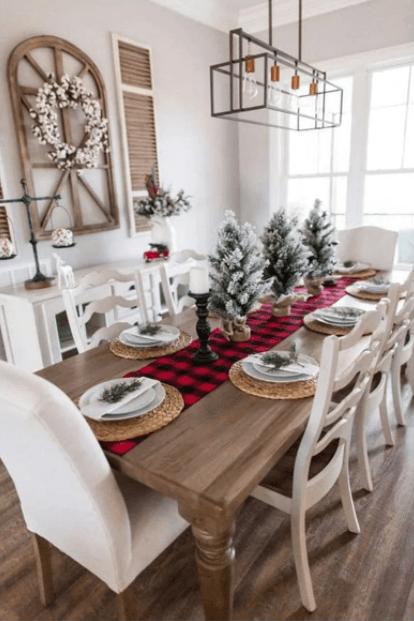 2pcs Christmas Table Runner Burlap & Cotton Black Red Plaid Reversible Buffalo Check Table Runner for Christmas Holiday Birthday Party Table Home Decoration