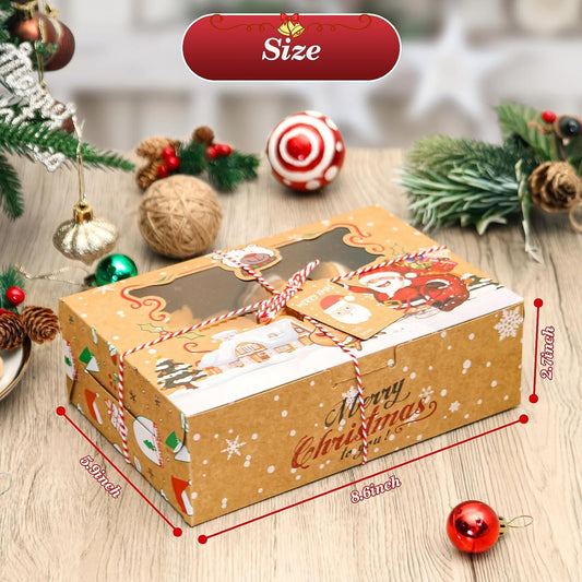 24Pcs Christmas Cookie Boxes with Window, 8.6 * 5.9 * 2.7in Bakery Boxes for Gift Giving, Kraft Brown Treat Boxes Dessert Boxes