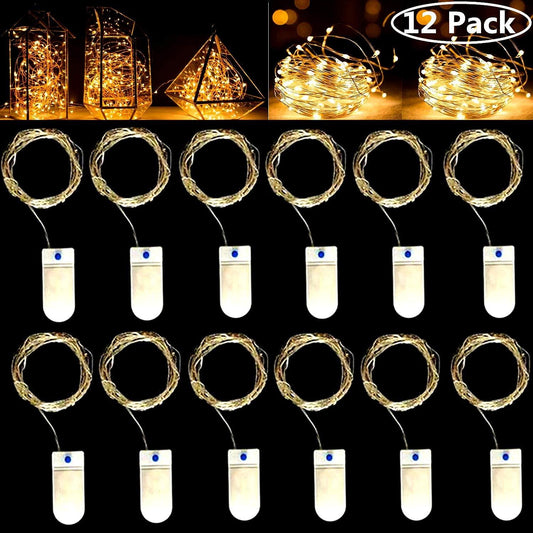 12 Packs LED Fairy Lights CR2032 Battery Operated String Wire Christmas Light,3.3Ft(1 Meters) 10 LED Firefly Starry Moon Lights for Birthday Wedding