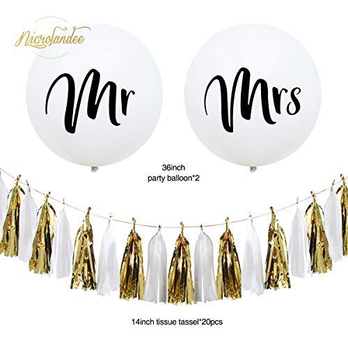 36 Inch Giant Wedding Balloons Mr. & Mrs. White balloons with Two Paper Tassel Garlands for Engagement Party Decorations Bachelorette Party Decorations