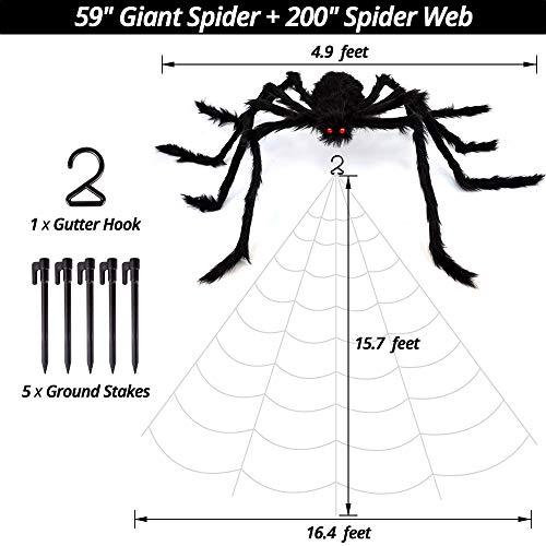 200" Halloween Spider Web + 20" Giant Spider Decorations Fake Spider with Triangular Huge Spider Web