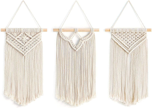 Small Macrame Wall Hanging, 3 Pack Art Woven Wall Decor Boho Style