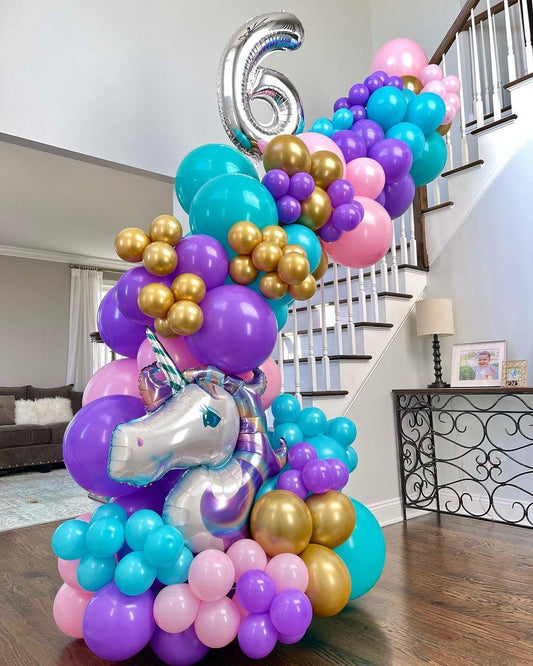 165pcs Shimmer and Confetti Silver Purple Unicorn Balloon Garland Kit for Birthday Decorations