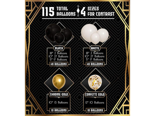 4 Sizes Black White Gold Balloon Garland Kit & Arch for New Years, Graduation or Birthday Small and Large Black and White Balloons with