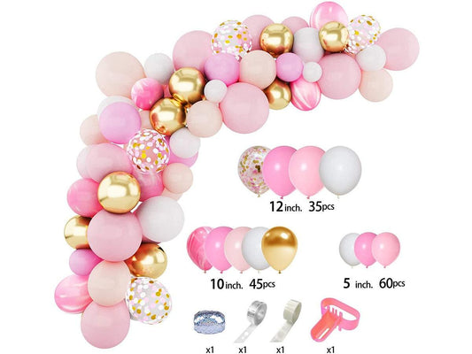 144Pcs Pink Balloons Garland Arch Kit Light Pink Gold White Balloons Confetti Latex Metallic Balloons for Girl Birthday Baby Shower Wedding.