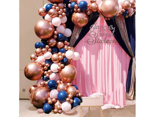 Navy Pink Balloon Arch Blue Rose Gold Metallic Balloons Garland Kit 115pcs Latex Pastel Party Balloons for Baby Shower Birthday
