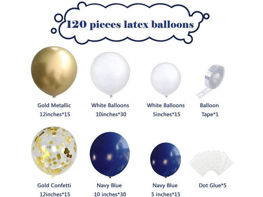 Blue and Gold Balloons Garland kit 120Pcs Navy Blue Balloons White Gold Confetti Balloons for Baby Shower Birthday and New Year Party