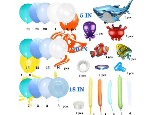 Ocean Theme Birthday Party Decorations Tiffany Blue Bobo Balloons Garland Kit with Shark Bubble Fish Clownfish Crab Octopus