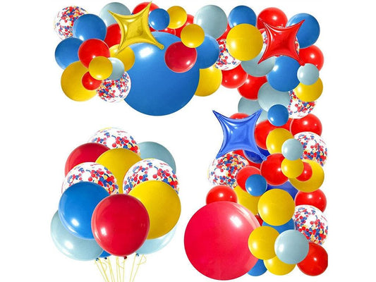 Carnival Circus Balloon Garland Arch Kit 120pcs Red Blue Yellow Primary Balloons DIY Fiesta Balloon Rainbow Confetti and Star Foil Balloons