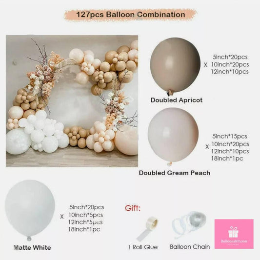127 Double stuffed Boho Rainbow Balloons Arch kit for BridalShower, baby shower, boho parties, Double Apricot, cream ,balloon Garland kit