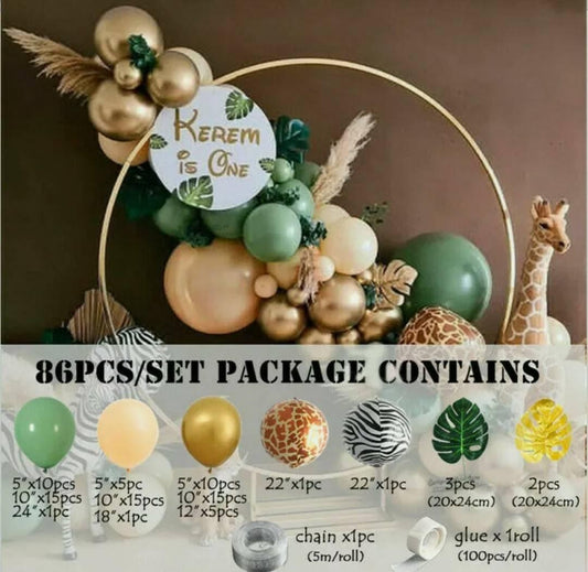 86 Pcs Eucalyptus Green, Sage Green balloon garland kit dusty green, safari theme, animal party ,birthday party decoration, babyshower,