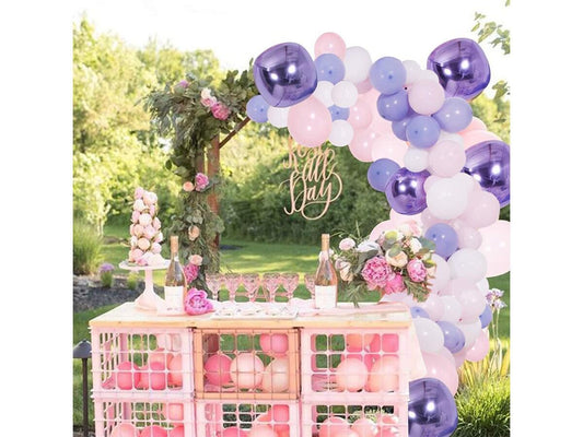 DIY Balloon Garland - Arch Kit, 138Pcs Pink - Purple & Blue - White Latex Balloons Set with Decorating Strip, Glue Dots, Pink Ribbon.
