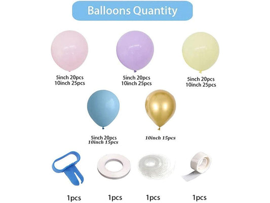 189PCS Pastel Balloons Garland Arch Kit Macaron Rainbow Balloons Purple Blue Pink Yellow Latex Balloon and Metal Gold Balloons for Decor