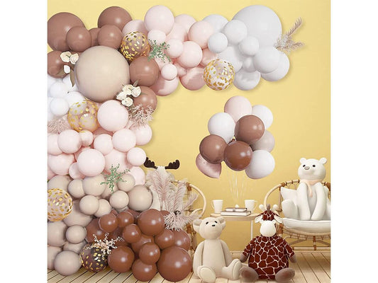Brown Balloons Garland Arch Kit, Neutral Tan Balloons for Teddy Bear Baby Shower Decorations Coffee Nude Peach Gold Confetti Balloons