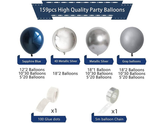 159Pcs Silver Navy Blue Balloon Arch Kit Confetti Balloons Garland for Wedding Graduation Baby Shower Anniversary Birthday Party Decorations