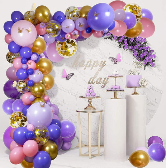 114pcs Pink and Purple Balloons Garland Arch Kit for Engagement Wedding Baby Shower Birthday Party Anniversary Celebration Butterfly Decor