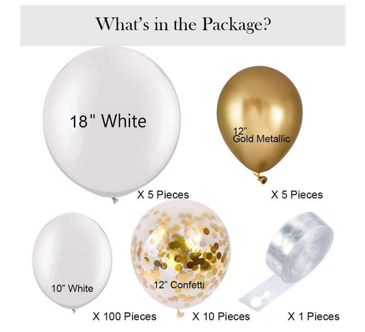 120PCS White Balloon Arch Garland Kit | Confetti And Gold Metallic Balloons | Baby Shower | Birthday Party | Background Decoration.