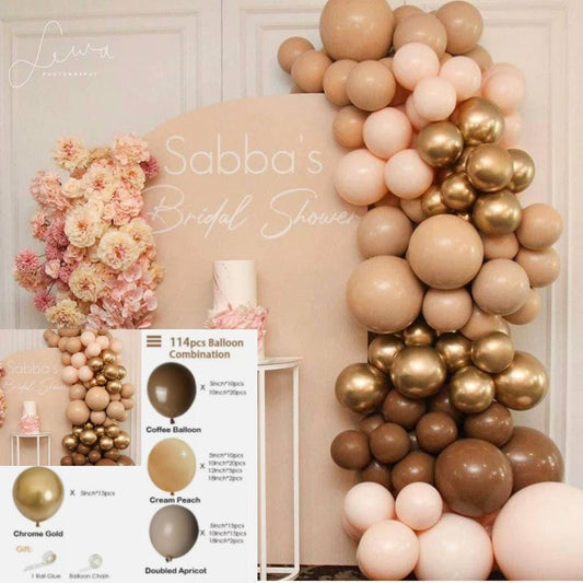 114pcs Doubled Coffee Cream Apricot Boho Balloon Arch, Balloons Garland,Birthday, Baby Shower Decor,Bridal Shower, Adult Party, Engagement.