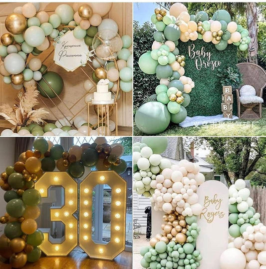152pcs Sage Green Balloons Arch Kit | Balloon Garland | Retro Green | Gold Latex | Avocado Color | Party Decor.